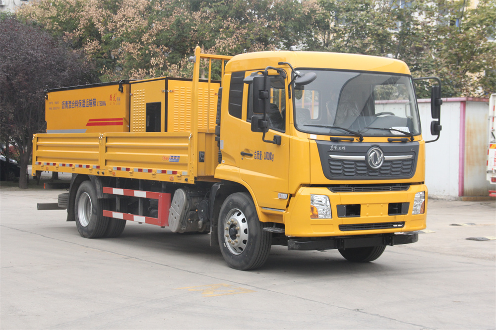 整車具有加熱、保溫、輸料、轉(zhuǎn)運、儲存和二次攪拌瀝青混凝土功能。