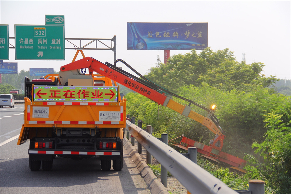 萬里交科路太養(yǎng)路機械公司推出的綠化綜合養(yǎng)護車適用于道路中分帶綠籬平剪立剪、邊坡樹籬及灌木雜草修剪、行道樹高枝修剪作業(yè)。是在江鈴二類汽車底盤加裝專用裝置改裝而成。
