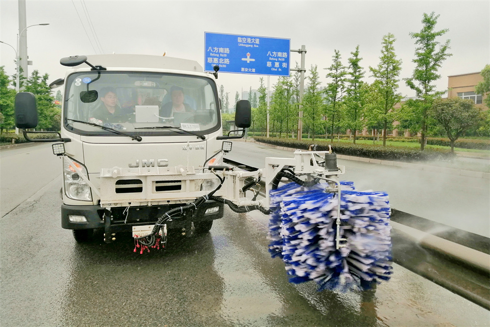 整車可選左、右單側(cè)清洗裝置,滿足中央護欄、機動與非機動車道中間護欄不逆向行駛機械化作業(yè)需求,避免行車安全風(fēng)險。