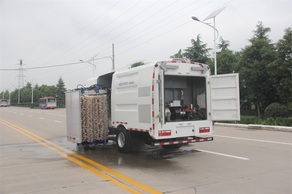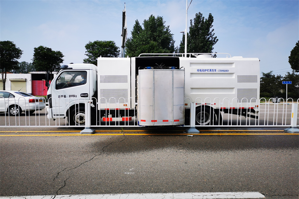 該車(chē)可清洗超高護(hù)欄,采用“雙面、兩沖、兩洗”清洗工藝。