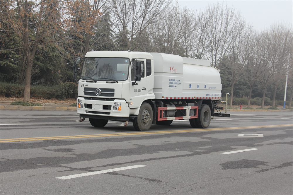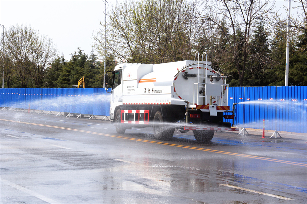 該車清洗方式為低平大水流沖洗,可實現(xiàn)前噴、中沖、后灑、側灑、后噴霧、水炮等功能。