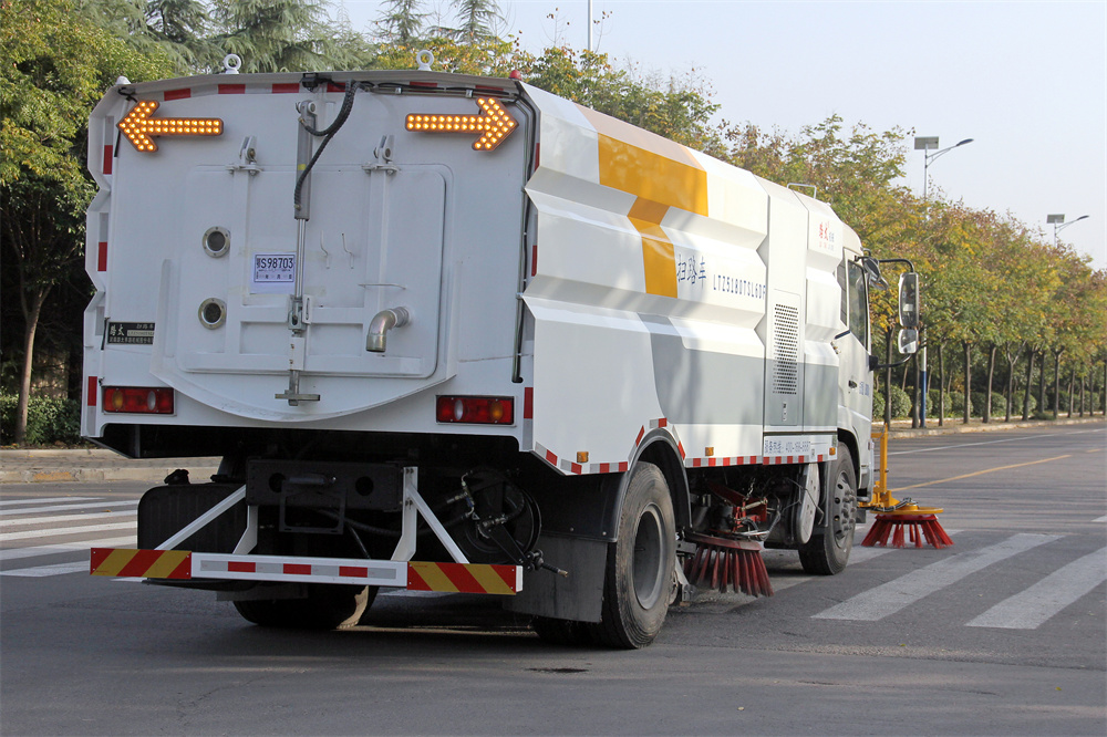 垃圾箱具有自動傾翻卸料功能,內(nèi)置高壓自清洗裝置,可實現(xiàn)垃圾箱自清潔,也可對全車清潔。