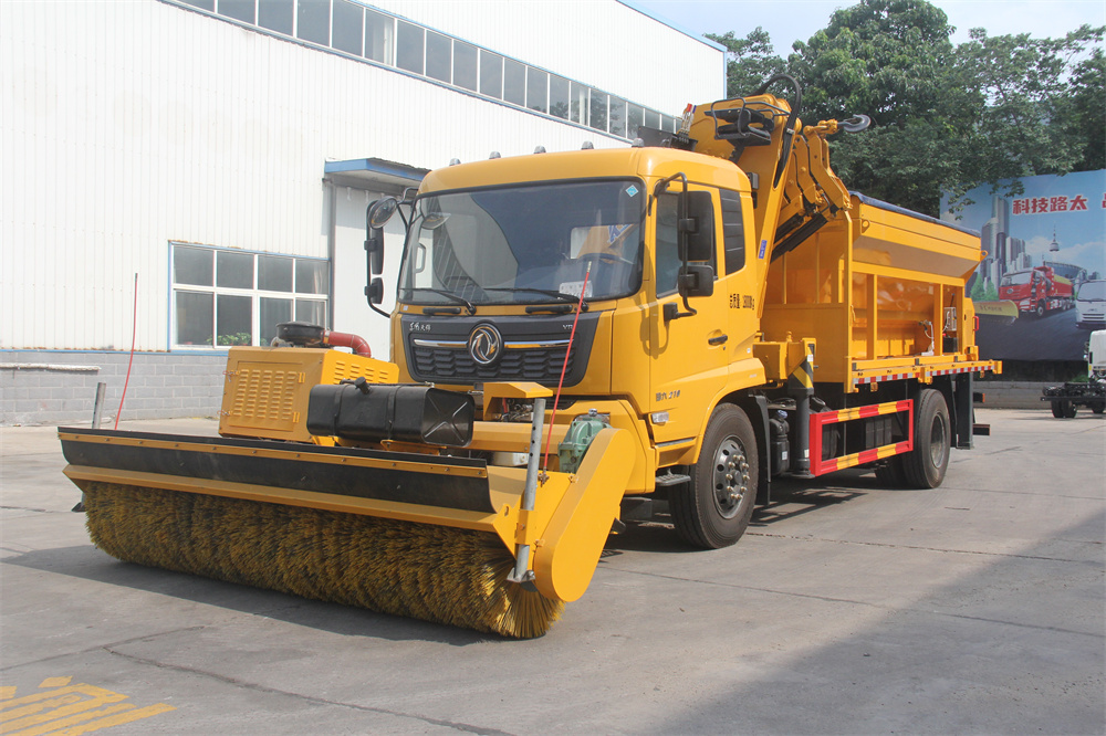 萬里交科路太養(yǎng)路機(jī)械公司推出的折臂吊綜合除雪車適用于公路、城市道路、機(jī)場(chǎng)、廣場(chǎng)、風(fēng)景區(qū)等工況的除雪、融雪、融冰作業(yè)。是在東風(fēng)天錦二類底盤基礎(chǔ)上改裝而成,配備隨車起重機(jī)、融雪撒布機(jī)、除雪鏟、除雪輥刷等工作裝置。