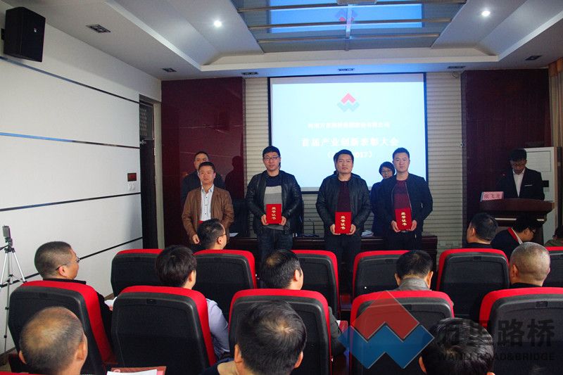 大會上,集團公司執(zhí)行董事兼運營總監(jiān)張培宣讀了《關于表彰獎勵科技創(chuàng)新功臣、科技創(chuàng)新先進工作者、產業(yè)創(chuàng)新獎和優(yōu)秀科技創(chuàng)新項目的決定》。集團公司董事長兼總經理張良奇、董事兼副總經理徐琦、執(zhí)行董事兼運營總監(jiān)張培、財務總監(jiān)鄭桂芬向獲得科技創(chuàng)新功臣、先進工作者、產業(yè)創(chuàng)新重點項目和優(yōu)秀科技創(chuàng)新項目研發(fā)人員代表頒獎。獲獎代表發(fā)表了獲獎感言,他們切實感受到,近年來,公司加大了科技創(chuàng)新投入的力度,這為公司產品、技術研發(fā)提供了有力支持,激勵著萬里路橋研發(fā)團隊同心同力,深化改革,昂首闊步,共同譜寫公司科技創(chuàng)新發(fā)展的新篇章。由集團公司董事長兼總經理張良奇與路太機械、金歐特瀝青、德通公司等子公司和事業(yè)部的負責人簽訂2017年經營目標責任書。