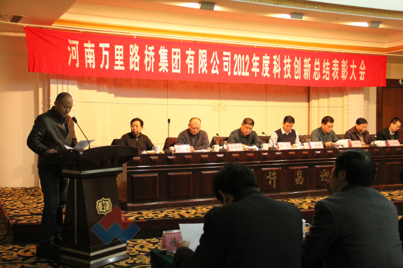 2013年2月26日上午,河南萬里路橋集團(tuán)有限公司“2012年度科技創(chuàng)新總結(jié)表彰大會”在許昌迎賓館隆重召開。集團(tuán)公司董事會及全體經(jīng)營班子、集團(tuán)公司各部門、各分(子)公司及事業(yè)部共140余人參加了會議。會議由集團(tuán)公司執(zhí)行總裁孫東坡同志主持。