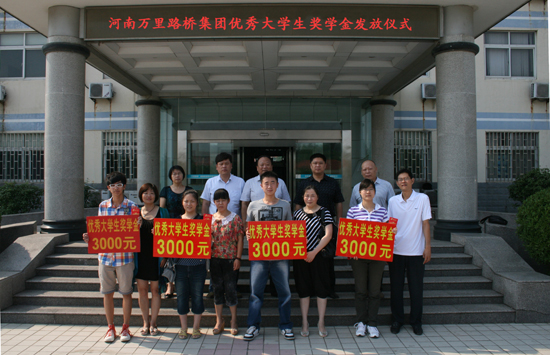 8月24日上午,河南萬里路橋集團有限公司對考入大學(xué)的4名員工子女舉行了頒獎儀式。集團公司副總裁侯克偉、徐琦、劉瀾波和集團黨委書記、工會主席張海濱以及集團各部門員工代表參加了頒獎儀式。