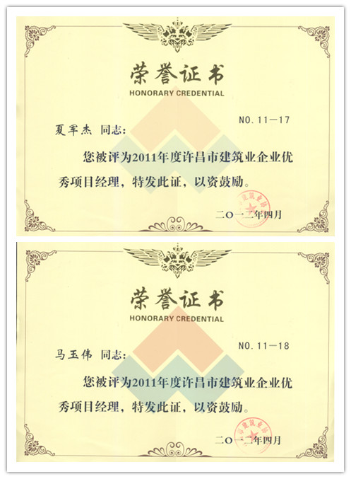 近日,許昌市建筑業(yè)協(xié)會組織開展了“2011年度許昌市建筑業(yè)先進(jìn)企業(yè)、建筑安全先進(jìn)企業(yè)、建設(shè)工程質(zhì)量管理先進(jìn)企業(yè)、建筑業(yè)企業(yè)優(yōu)秀項(xiàng)目經(jīng)理等行業(yè)先進(jìn)單位和個人”評選活動。根據(jù)許建協(xié)【2012】1號文件精神,集團(tuán)公司積極申報(bào),經(jīng)市建協(xié)組織專家初評,許昌市建筑業(yè)協(xié)會建筑行業(yè)評先委員會審定,集團(tuán)公司喜獲殊榮,被評為“2011年度許昌市先進(jìn)建筑企業(yè)”、“2011年度許昌市建設(shè)工程質(zhì)量管理先進(jìn)企業(yè)”、“2011年度許昌市建筑安全先進(jìn)企業(yè)”,集團(tuán)公司副總經(jīng)理夏軍杰、馬玉偉兩人被評為“2011年度許昌市建筑企業(yè)優(yōu)秀項(xiàng)目經(jīng)理”。
