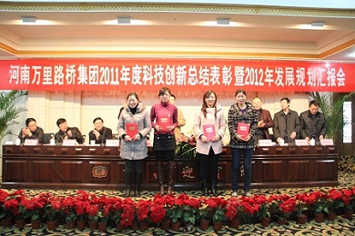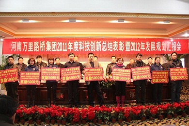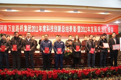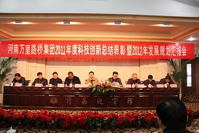 2012年3月3日,“河南萬里路橋集團(tuán)2011年度科技創(chuàng)新總結(jié)表彰大會(huì)暨2012年度發(fā)展規(guī)劃匯報(bào)會(huì)”在許昌迎賓館隆重召開。集團(tuán)領(lǐng)導(dǎo)、集團(tuán)各子公司及集團(tuán)各部門共130余人參加了會(huì)議,會(huì)議由集團(tuán)總裁付建紅同志主持。