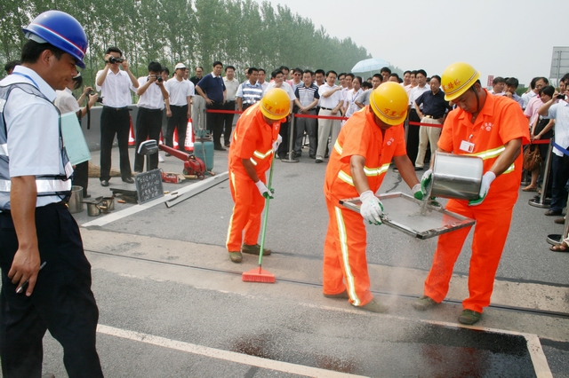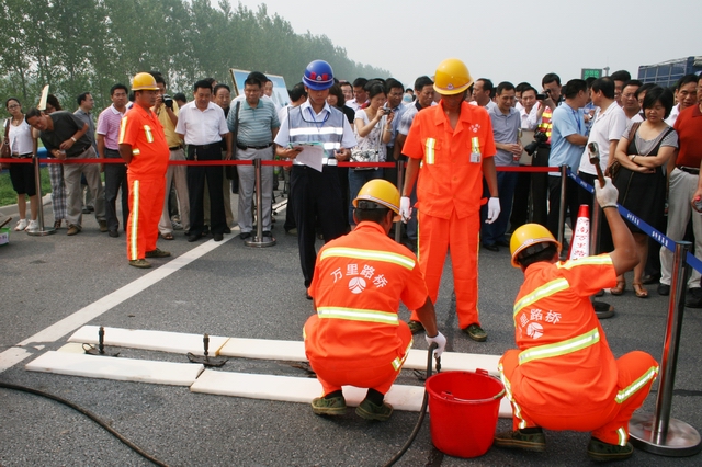 萬里路橋集團(tuán)“壓力注漿處治路面裂縫技術(shù)”和“CAP瀝青還原劑處治路面局部病害技術(shù)”在觀摩會(huì)上進(jìn)行現(xiàn)場(chǎng)演示,受到省交通運(yùn)輸廳副廳長范躍武等與會(huì)領(lǐng)導(dǎo)的一致好評(píng)。