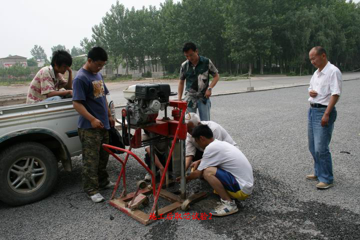 自2008年開始,工程中心進(jìn)行了一系列的乳化瀝青冷拌冷鋪試驗(yàn),分別于2009年8月和今年的4月份在瀝青科技公司廠區(qū)進(jìn)行了兩次試驗(yàn)段試鋪。今年5月22日,中心以311國道改建為依托工程,選定路試試驗(yàn)段位于許昌西環(huán)城路南段重車方向的挖補(bǔ)段,樁號(hào)定于K381+680-K381+720(西半幅),總面積為350平方米。路面結(jié)構(gòu)為下基層水泥砼+上基層場拌冷再生厚10cm+防水層每平方米1.8kg熱瀝青+瀝青混凝土7cm。