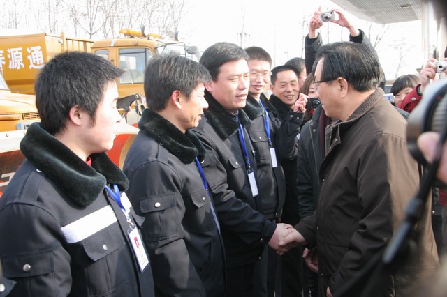 在連霍高速洛陽服務(wù)區(qū),李盛霖部長與連日來奮戰(zhàn)在保通一線的我項目部員工代表及路政、交警、服務(wù)區(qū)員工一一握手,并送上了慰問品。李盛霖部長對在近來幾天惡劣風(fēng)雪天氣中奮戰(zhàn)在河南高速公路一線上的廣大干部員工克服困難,全力為被困司乘提供服務(wù),確保春運(yùn)安全的做法給予了充分肯定和高度評價。李盛霖部長講到:“河南交通系統(tǒng)干部職工、公安系統(tǒng)的交通干警在省委、省政府的統(tǒng)一領(lǐng)導(dǎo)下,在省交通廳和公安廳的具體組織下,迎難而上,克服重重困難,采取種種措施,保證了惡劣天氣下的道路通行,這是很不容易的。你們做了很多工作,付出了很多努力,值得我們大家學(xué)習(xí),我代表交通部黨組對河南交通部門干部職工的努力表示問候,對公安交通干警表示衷心地感謝!”
