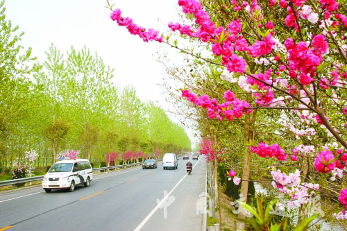 目前,江蘇高郵四通八達(dá)的村路旁,桃花盛開,爭奇斗艷。在營建綠色生態(tài)路的過程中,高郵市在道旁廣植桃樹,打造出一條條姹紫嫣紅的桃花路(如圖)?!”緢?bào)記者 施科 李宏斌 通訊員 程廣德 文/圖