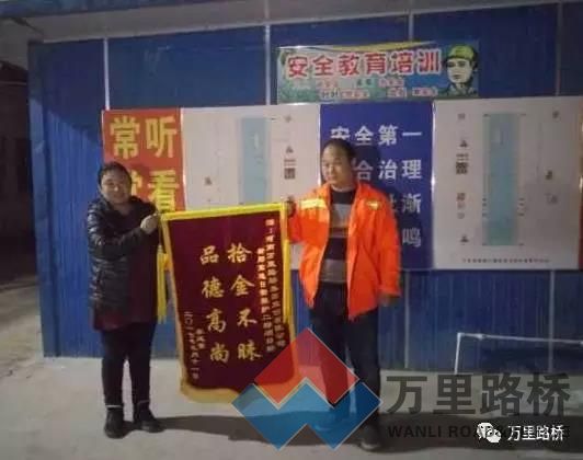 事情的經(jīng)過原來是這樣的:3月11日下午17時(shí)許,快遞大姐送完當(dāng)天快遞后,將收到的上月工資習(xí)慣性地裝進(jìn)棉襖兜里,用棉襖蓋住腿御寒,騎電動(dòng)車回家途中將棉襖丟失。18時(shí)左右,原文振在經(jīng)過項(xiàng)目部大門口時(shí),看見有個(gè)半新棉襖在門前的路上,常年的高速公路清障保通的職業(yè)本能使他撿起了這件衣服,但令人想不到的是棉襖兜內(nèi)竟裝有6400元現(xiàn)金,想到失主丟失現(xiàn)金后的焦急心情,他不加思索地將棉襖及現(xiàn)金交給了項(xiàng)目部辦公室,當(dāng)?shù)诙焓е餮赝緦ふ业巾?xiàng)目部時(shí),原文振將現(xiàn)金如數(shù)歸還。對(duì)于丟失的現(xiàn)金失而復(fù)得,激動(dòng)的快遞姐當(dāng)即拿出500元現(xiàn)金對(duì)原文振表示感謝,但被原文振婉言謝絕了,他說:“每個(gè)萬里路橋人都會(huì)這樣做的”。